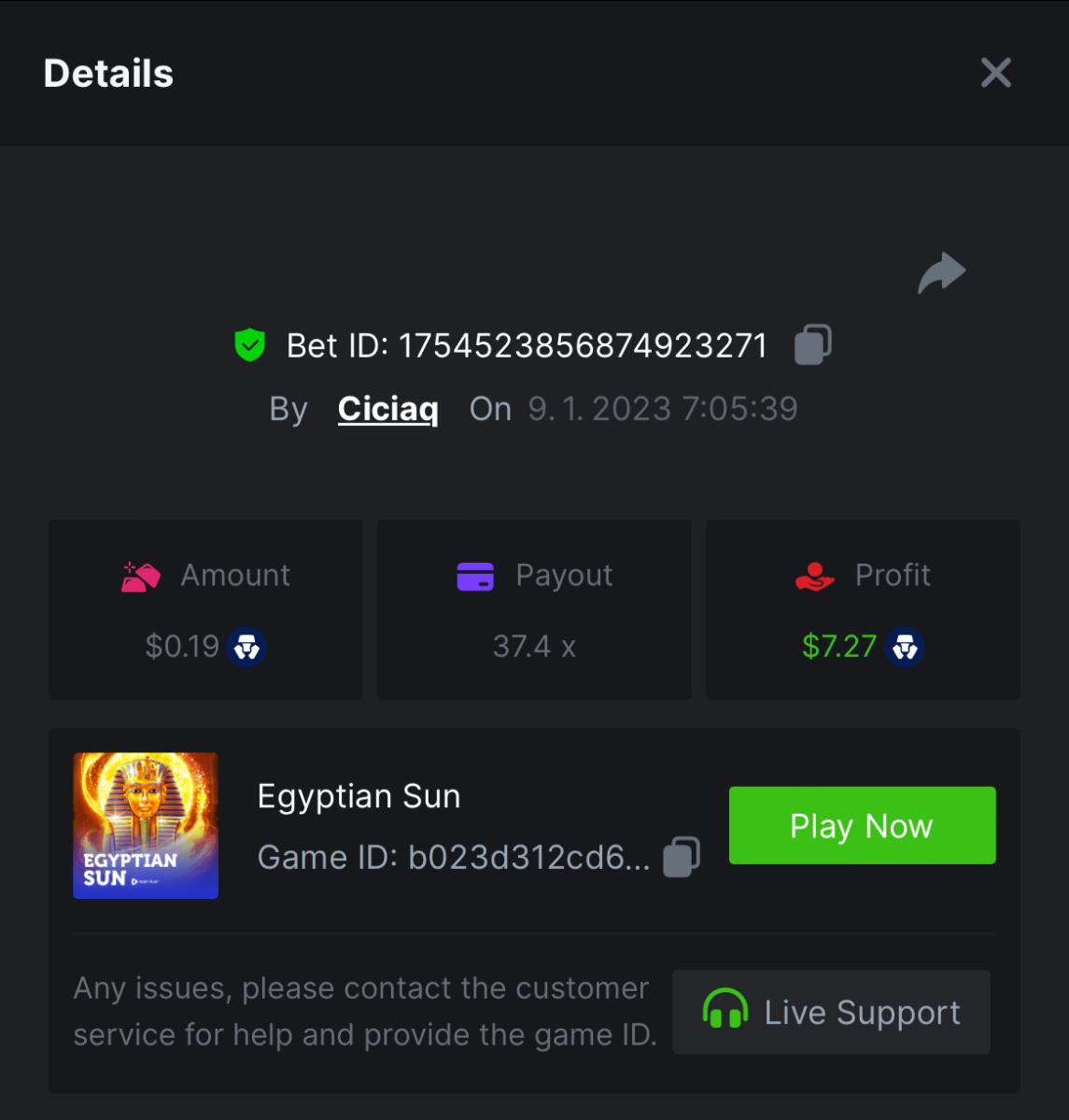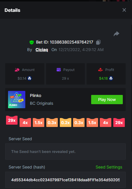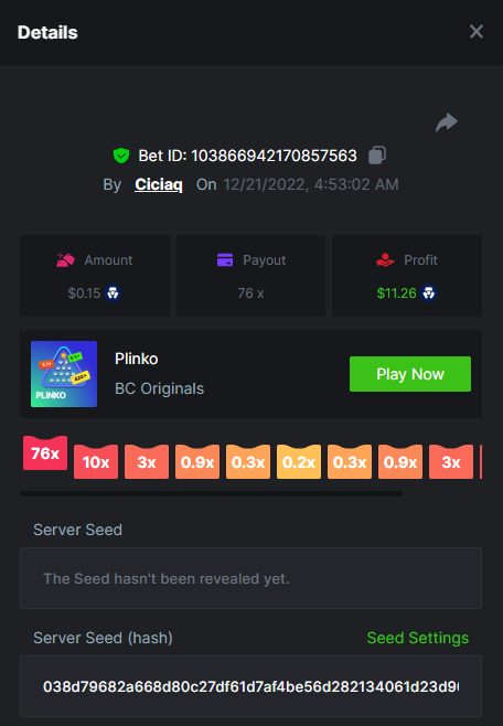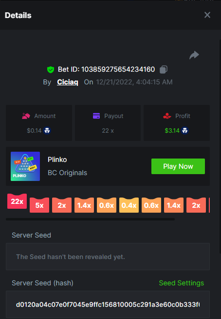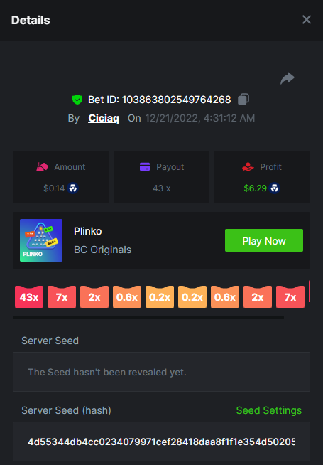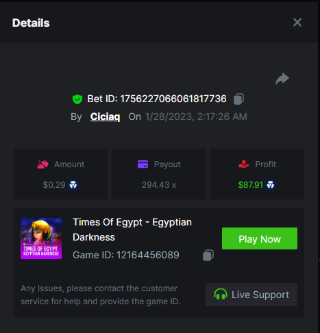 Majestic Winter - Avalanche - 247.05x https://bc.game/#/sd/112AMVQXAK8VTF Book of Wolves - 200.70x https://bc.game/#/sd/112AO7CEGTEBDF Times Of Egypt - Egyptian Darkness - 294.43x https://bc.game/#/sd/112ARJPKT3XDLF