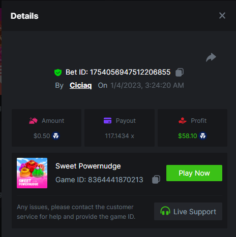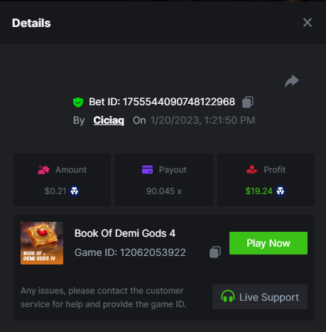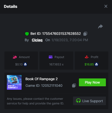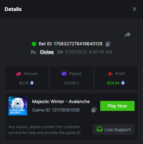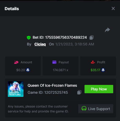 Story of Medusa 2 - 15.02x https://bc.game/#/sd/1123634SNL03KJ Wolf Fang - Snowfall - 21.67x https://bc.game/#/sd/1123253W7HMY37 Book of BCGAME - 79.58x https://bc.game/#/sd/11235VK3ZZCAAB Book Of Rampage 2 - 167.17x https://bc.game/#/sd/111Q81IG8W7H8Z Book Of Demi Gods IV - 90.05x https://bc.game/#/sd/111S31U2Y2UGPF Queen of Ice- Frozen Flames - 174.09x https://bc.game/#/sd/111TIXY9T5KKR7