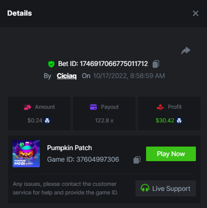 17. Pumpkin Patch - 122.8x https://bc.game/#/sd/10V84J842NE1OZ Magic Oak - 124.9x https://bc.game/#/sd/10V6XCDGLBVNYR The Dead Escape - 63.33x https://bc.game/#/sd/10V873TD227LEB Santa's Village - 67.67x https://bc.game/#/sd/10V865LPP8FRWZ