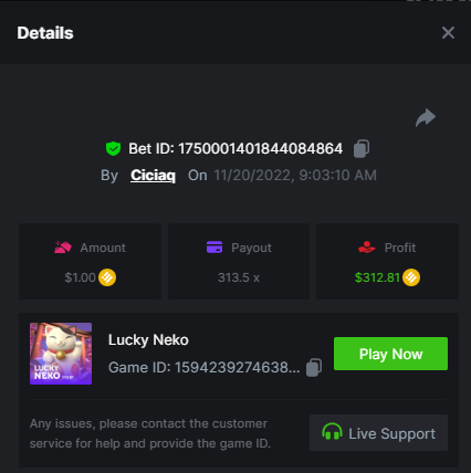 7. Lucky Neko - 313.5x https://bc.game/#/sd/10XKHJCEFH2Q6R Egypt's book of Mystery - 330x https://bc.game/#/sd/10XI3PMIH8US5V Leprechaun Riches - 52.8x https://bc.game/#/sd/10XHULLVWZFPQR Ganesha Fortune - 412.5x https://bc.game/#/sd/10XJZ8GHOK7OYB Queen of Bounty - 78.3x https://bc.game/#/sd/10XKCPCSQDDFYR Mahjong Ways - 65.4x https://bc.game/#/sd/10XJ2S4736T6AB Jurassic Kingdom - 67.15x https://bc.game/#/sd/10XHUEBPG8MCYB Crypto Gold - 86.7x https://bc.game/#/sd/10XJIDJWU7XEKZ Legend of Perseus - 88.55x https://bc.game/#/sd/10XJA5LHXI8TN7 Speed Winner - 159.25x https://bc.game/#/sd/10XI0J9JJUCPOZ Bounty - 50.85x https://bc.game/#/sd/10XKH4P8729LAR