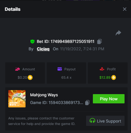 4. The Great Icescape - 114.08x https://bc.game/#/sd/10YVGHUR2O2RDF Santa’s Gift Rush - 35.33x https://bc.game/#/sd/10YVGCRGYK5GCZ Jack Frost’s Winter - 65x https://bc.game/#/sd/10YVGLSHC5P6OJ Mahjong Ways - 213.3x https://bc.game/#/sd/10YVGUJ8RWQPEB Mahjong Ways Two - 78.34x https://bc.game/#/sd/10YVMAV15FEXAR Treasures of Aztec - 46x https://bc.game/#/sd/10YVQD0V4D45JN Lucky Neko - 52.2x https://bc.game/#/sd/10YVK44U6Q0CNN Buffalo Win - 121.3x https://bc.game/#/sd/10YVH8RRJC7OCZ Wild Bandito - 160.5x https://bc.game/#/sd/10YVHI4BMQL1QR Dreams of Macau - 149.5x https://bc.game/#/sd/10YVHLSYWRHS0J