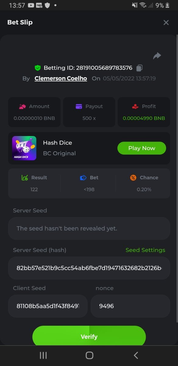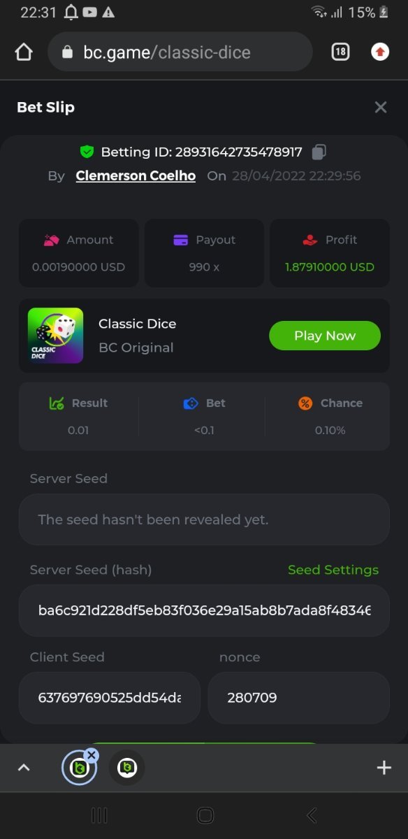 Desafio Semanal - Hash Dice