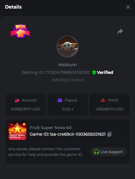 Hey VIPs! We've got another Battle exclusive for you in the last week of January, this time with our provider Evoplay, and a prize pool of up to $4,000! Get the highest possible payout you can on the four Slots listed below! Participants need to reach the highest payouts, and each payout will be added together to form the rank. Plus, all players who complete the extra bounty will receive an equal share of 10% of the prize pool. Eligible Games Get the highest multiplier on the Evoplay slots listed below Fruit Super Nova 60 Epic Gladiators Penalty Shoot Out Mine Field The highest multiplier reached in each slot will be added together and counted as total points. If the player submits multiple winning entries for the same slot, the entry with the highest multiplier will be valid. Minimum VIP Tier Must be VIP08 or higher in order to enter this challenge. Minimum Payout Minimum payout to qualify is 10x (in any slot) for a valid entry. Minimum Bet Size Fruit Super Nova 60 - $0.10 Epic Gladiators - $0.10 Penalty Shoot Out - $1.00 Mine Field - $1.00 Eligible Coins All cryptocurrencies are eligible (excepting JB) Prize Pool & Reward Breakdown The winners will win a share of the prize pool based on the detailed ranking below. Anyone who completes the side bounty will receive a share of a 10% of the prize pool. EXTRA BOUNTY - Post a bet that shows exactly 34x on any of the 4 slots within the timeframe of this battle and receive a share of 10% of the prize pool! If nobody reaches exactly 34x, all players who accumulate more than 340 points adding up all payouts will equally divide the extra bounty. How to Enter To enter, copy the bet ID of the bet you'd like to submit. Once you've copied it, post it as a reply to this thread like so: Betting ID: 1723047998555192192 In the same post, upload a screenshot of your win by clicking the game ID WITH VIEW IN USD mode ENABLED (accessible at the bottom of dropdown menu for your wallet up top. This way, we can ensure that your bet indeed met the minimum requirement at the time of placing it: Example post - Betting ID: 1723047998555192192 Good luck everyone!
