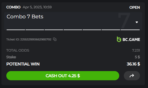 3. https://bc.game/sports?bt-path=%2F%3FbtBookingCode%3DFFB0A81 Ticket ID: 2255321810662985792