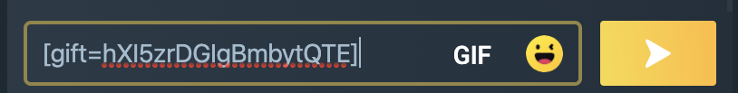 If you don't want to create your own GIF, select one from the GIPHY website and skip to Step 5. Step 1. Go to https://giphy.com/ and..... Click "upload" if you already have a finished GIF or Click "create" if you want to add captions, stickers or customize. Step 2. Choose GIF or MP4 file from your library. Step 3. Customize, write your caption, click "continue to upload." Pro Tip - Use a LARGE FONT or it will be very hard to read in chat. Step 4. Click "upload to Giphy".... again. Step 5. Get the code to paste into BCGame chat Click "copy link" then copy only the letters and numbers in the link. (see below image) Pro Tip - On some browsers you will have to copy the entire link and paste it somewhere else to extract the part you need. Step 6. Type the code from Step 5 in chat like I do in the example below. Replace where I typed "your code" with the code you copied in Step.5 [gift=your code] it will look like this [gift=hXI5zrDGIgBmbytQTE] Step 7. Enjoy the dank meme or GIF you just uploaded. That's it. Easy Peazy. After you do it a few times, the process takes only a minute or two. Thanks @CaPtN for teaching this to me.