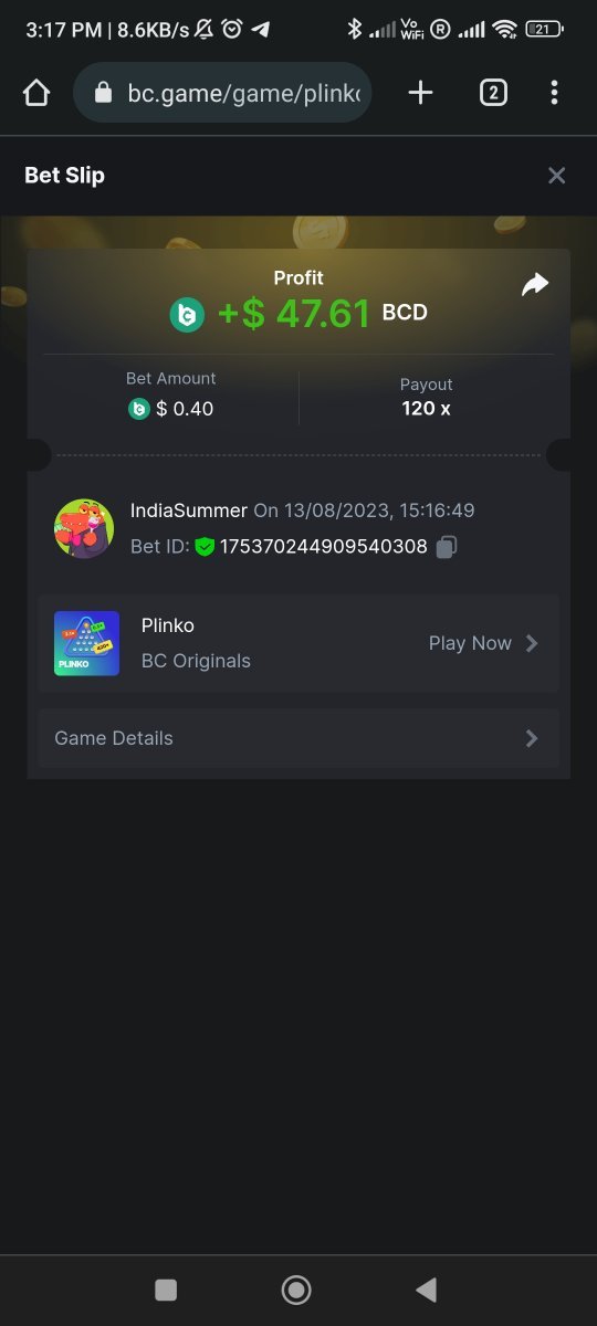 IndiaSummer replied to BCGame_Maxim's topic in Past Challenges
