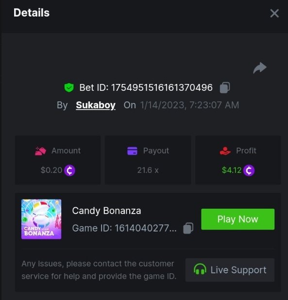 142.8x - https://hash.game/#/sd/11HY0QI34ZTZ6F Other multis: 15x-https://hash.game/#/sd/11HS7B9ZNV9DOF 56.4x-https://hash.game/#/sd/11HXVBFJBTVFPZ 58x-https://hash.game/#/sd/11HXZUVRLZDU2N -