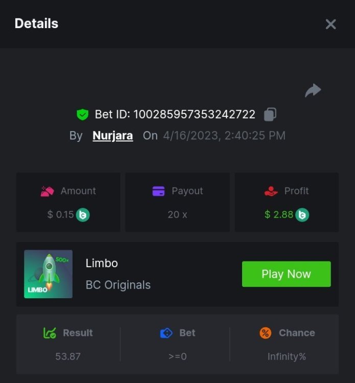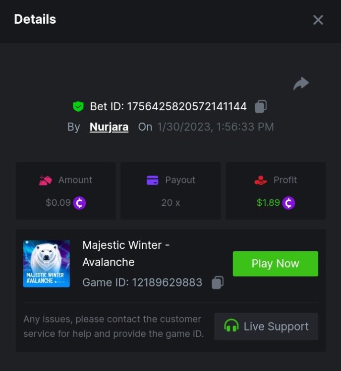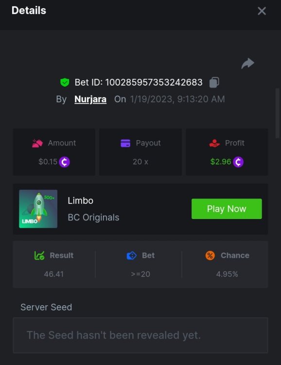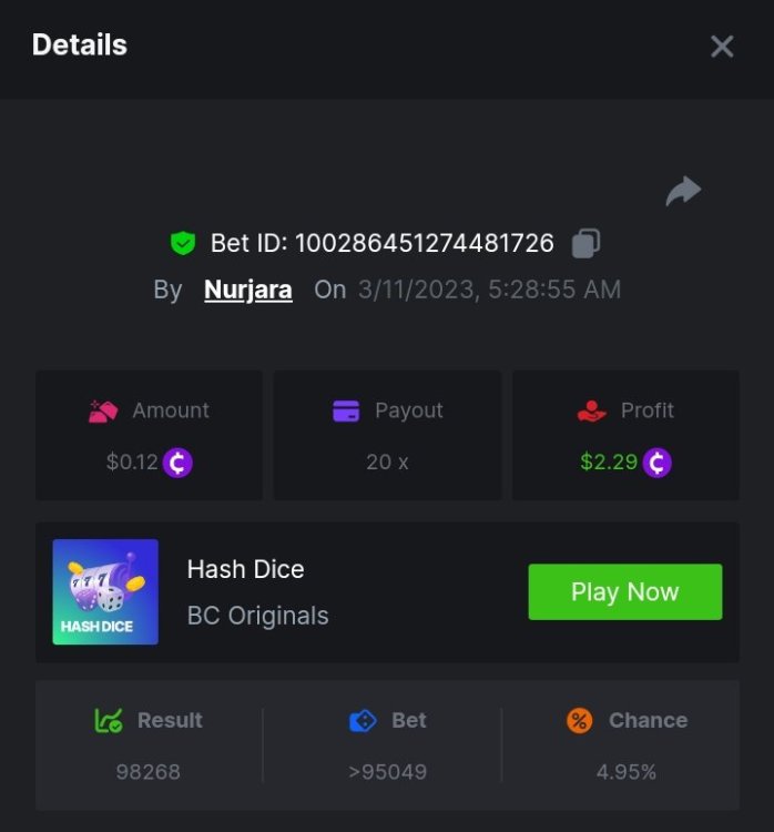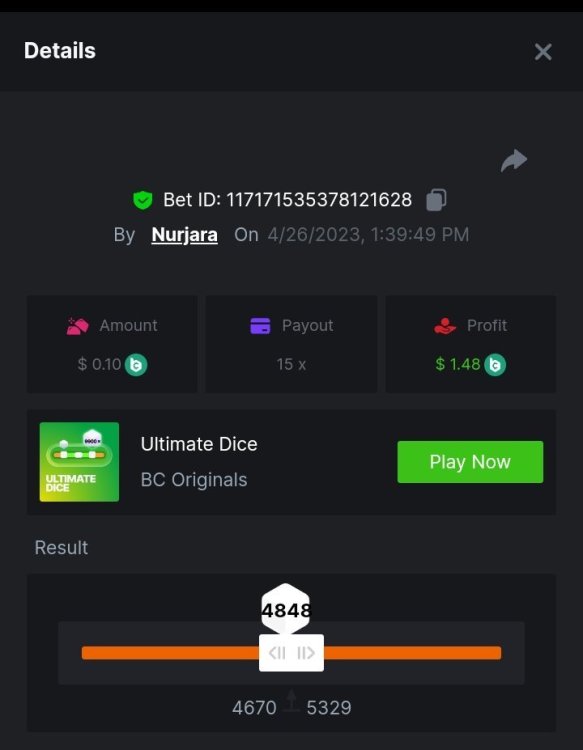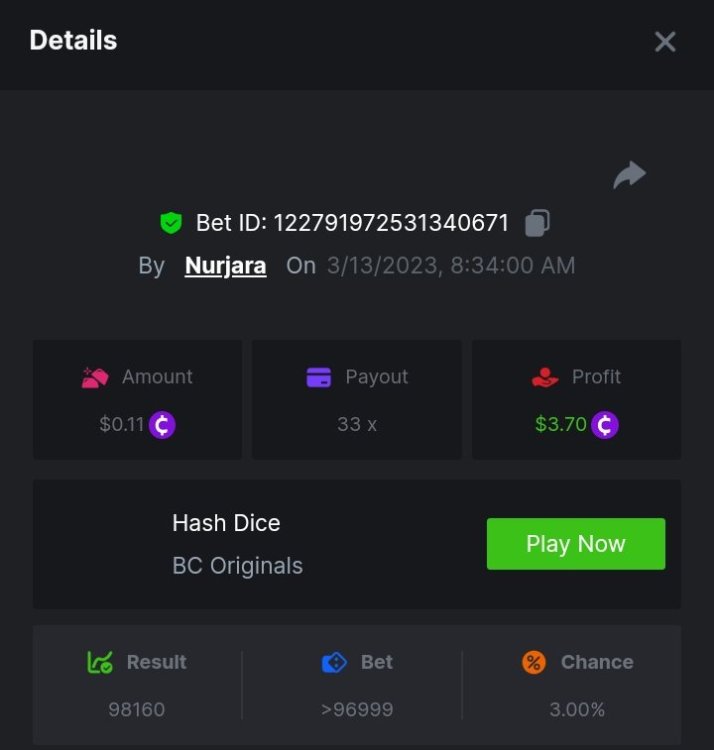 $1,500 Exclusive Weekend Hash Dice Prestige Challenge #76Nurjara replied to BC_Jack's topic in Past Challenges