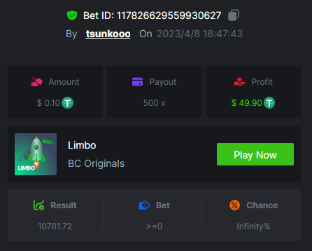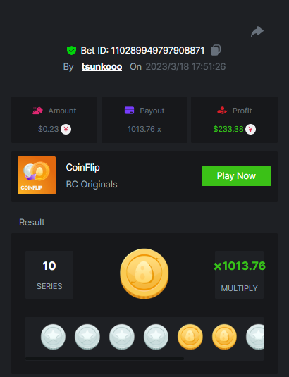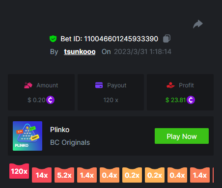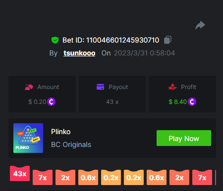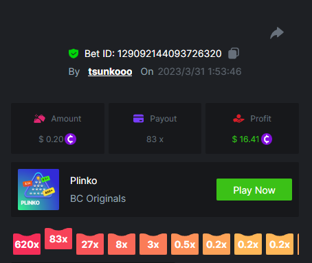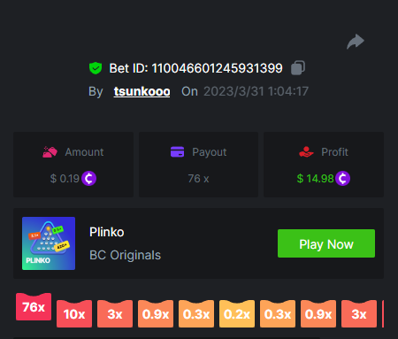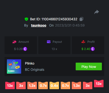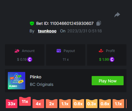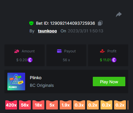 | 11x | 13x | 22x | 29x | 33x | 37x | 43x | 56x | 76x | 83x | 110x | 120x | 170x | 260x | 420x | 620x | 1000x | 11x : https://bc.game/#/sd/11ANREVFMOY903 13x : https://bc.game/#/sd/11ANQYUGMA8RGZ 22x : https://bc.game/#/sd/11AO0IYZHNHHJN 29x : https://bc.game/#/sd/11ANR64CMQX2QB 33x : https://bc.game/#/sd/11AKJG20V58L5F 37x : https://bc.game/#/sd/11ANUD6ZIX6B6B 43x : https://bc.game/#/sd/11ANTSMZ9VQ7F7 56x : https://bc.game/#/sd/11ANVHL772GXEB 76x : https://bc.game/#/sd/11ANUMFFOPBTHV 83x : https://bc.game/#/sd/11AKSHZ0NLK1SJ 110x : https://bc.game/#/sd/11ANJR864VNOCZ 120x : https://bc.game/#/sd/11AKSX1VSERY1F 170x : https://bc.game/#/sd/11AKSQUN3LRQXF 260x : https://bc.game/#/sd/11AKV07YJ6711V 420x : https://bc.game/#/sd/11ALGAPRUXY8SZ 620x : https://bc.game/#/sd/11ALGYT5SBPHCJ 1000x : https://bc.game/#/sd/11ALY2FDK83GGJ -