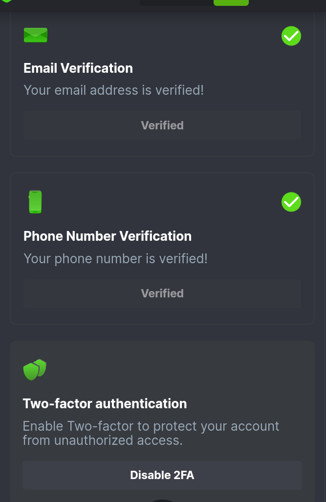 1. easy 1. Classicdice: https://bcgame.im/#/sd/11VL8P00A8FT37 2. https://bcgame.im/#/sd/11W5TJW3O32NC3 3. Enable 2FA for your BC.Game account + Verify E-Mail & Phone Number (If 2FA already activated, keep it activated): DONE 4. 2387994731239051376