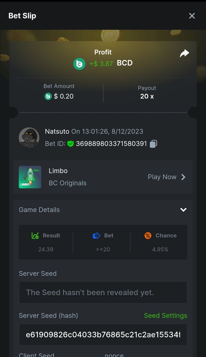 1. Easy 1 Classicdice https://bcgame.im/#/sd/11VSS7HRBMZM8V 2. Baccarat https://bcgame.im/#/sd/11VSSOYONXA4WV 3. Enable 2FA for your BC.Game account + Verify E-Mail & Phone Number: DONE