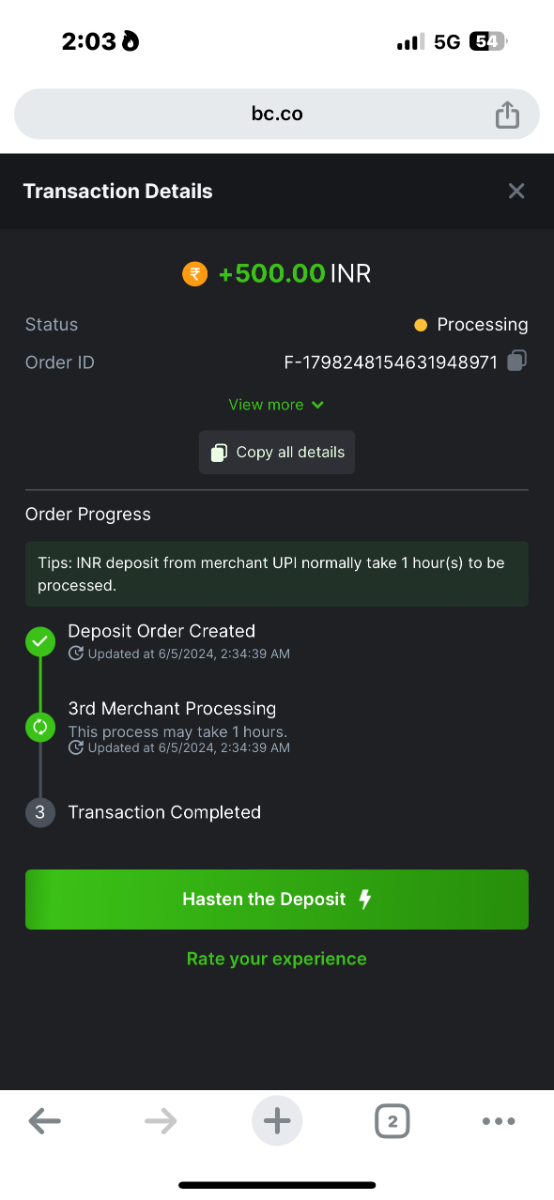 2. Deposit of 500 on 6may till now single amount of this transaction will credit on my wallet ur live support is full of errors no one will help this game is fraud