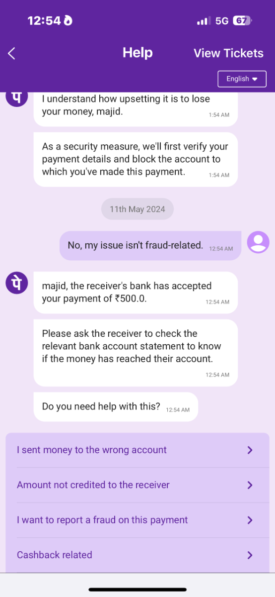4. I jst deposit payment on 06till now my wallet is empty and costumer support is like that they r un conscious the screen short i have to send