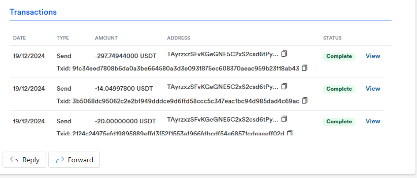 2. Hey Guys Just a heads up I have been fighting with the support team for months now (which we all know is terrible) On the 19/12/2024 my account was logged out and when I went to log back in I cant as it asked for 2FA codes which I never set up At that time I had around $300 USDT in the account. I have just been able to get the 2FA removed and get back into my account today. Low and behold $0 in the account Now you can clearly see in the photos the deposit was 77 days ago and when I go to transactions there is nothing for the last 90 days. They have scammed my account and taken the funds. Watch out guys look at all the photos and you will see what I mean. BC game wallet matches TX id, no transactions in the last 90 days is proof that its was scammed!