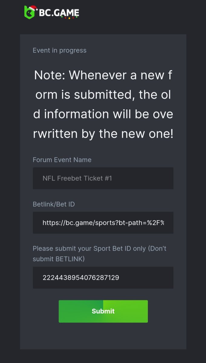 3. I've joined the forum event; Now it's your turn to win generous rewards from BC.GAME! Sports Bet ID: 2229195161592803863
