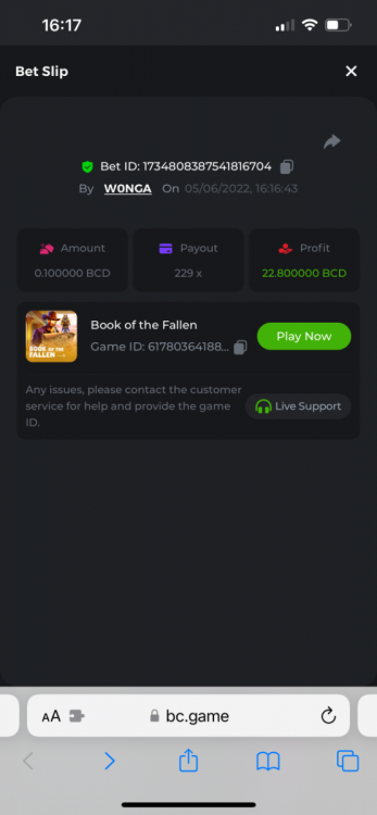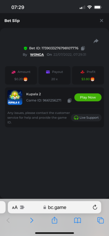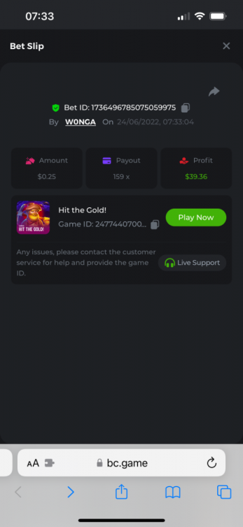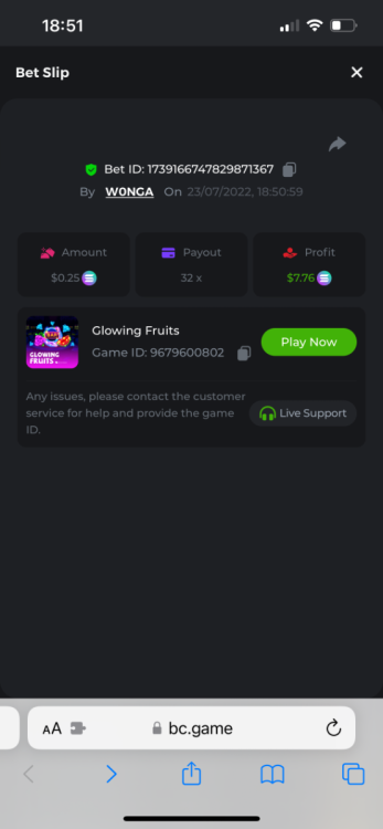 I just need to get this message out there as I can’t reply to the past contest which was closed. I feel that how the outcome was calculated was not accurate. The bounty was to hit 51x exact. However many still claimed the prize for getting 51.4 or 51.2 for example. I do realise that there was a case where one got 51.0008x or so which is valid. But the others in my opinion should have been voided. Ultimately it’s down to bc to decide, but for me it’s a big deterrent to continue playing, pausing, screenshot , copying bet links and updating the forum by navigating through pages of posts as well as waiting a week to claim a prize. I would love to see some investment in such competitions to automate this. Get a public leaderboard on your homepage. It will attract more users. One last suggestion, create a poll and let the ‘community’ decide on the slot providers. -