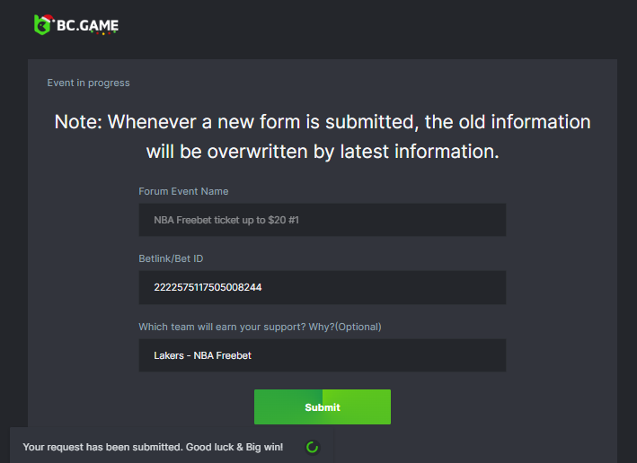 6. I've joined the forum event; Now it's your turn to win generous rewards from BC.GAME! Ticket ID: 2222575117505008244