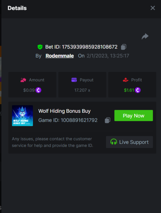 6. Cycle of Luck https://bc.game/#/sd/110K6XS96SZJMB x10 Wolf Hiding Bonus Buy https://bc.game/#/sd/110K7KLXND2N0Z x17.2