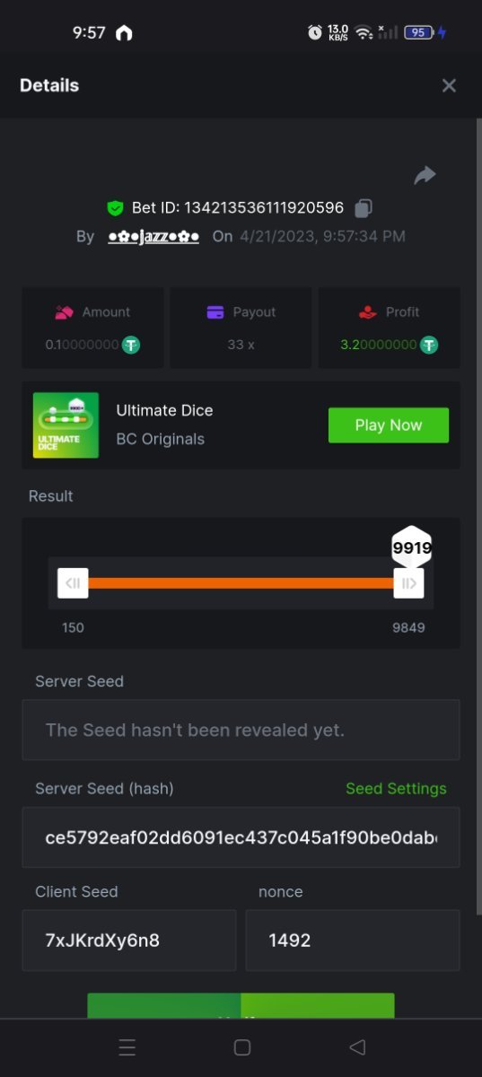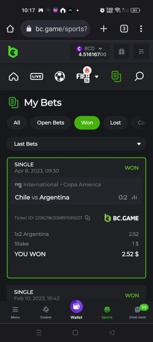 Easy Tasks: Win Classic Dice 5x payout https://bc.game/#/sd/11746F766FGE1F Crash bet 10x payout https://bc.game/#/sd/1174MDEVVSSUMR Win a Sports bet (minimum 1.5x odd) Ticket ID: 2256402702043058462 Enable 2FA + Verify email & phone # Medium Task: Win a Sports bet (minimum 2x odd) Ticket ID: 2256296308891595027 Hard Task: Get a 49.50x on Wheel https://bc.game/#/sd/1174XMJCH58TUB -
