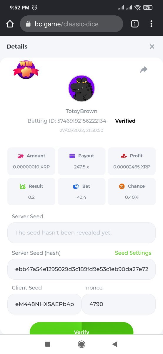 Game:Limbo Hunt: x100 and the last two numbers in the bet id must be 10