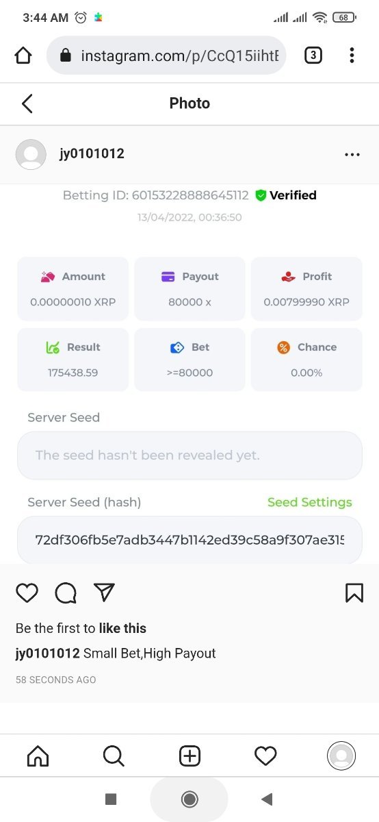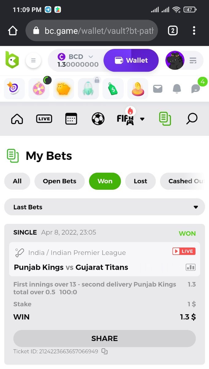 Easy 1. IG username: jy0101012 2.IG post link: https://www.instagram.com/p/CcQ15iihtEh/ IG username: jy0101012 3.Twitter Handle: jy0101012 4.Twitter Link post: https://twitter.com/BCGameOfficial/status/1513818244859457537?s=20&t=k-Gx9ZNEpjCFZIQLuoWYbQ Twitter Handle: jy0101012 5.FB profile link: https://m.facebook.com/john.yan.16121?lst=100042354130320%3A100042354130320%3A1649794589 6. 7. Sports Bet id: 2125322774074499456 8. 9. 10. Enable 2FA Medium 1. 2. 3. 4. 5. Sports Bet id: 2126036089507557603 Hard 1.Wheel 49.5 https://bc.game/sd/?sd=10ILDC7GCTCAOJ