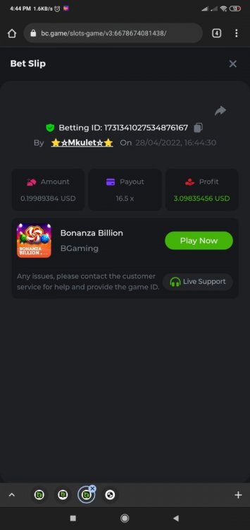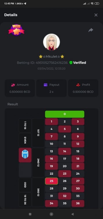 21. $4k Top Tier Roulette Challenge #15 Maligayang pagdating sa kamangha-manghang Las Ve... ikalabinlimang Top Tier Challenge! Ang kaganapan sa linggo ay sa aming in-house na Roulette Single Player, na may premyong pool na hanggang $4,000. Ang roulette at swerte ay may pagkakatulad: ang mga ito ay kaswal at may kaunting posibilidad na mangyari, ngunit maaaring mangyari at habulin ang mga hindi inaasahan. Ano ang Hamon? Ang mga kalahok ay dapat manalo ng maraming magkakasunod na taya hangga't maaari sa pamamagitan ng pagpili ng kulay na Pula o Itim (Sa in-house na laro ng Roulette Single Player ). Ang magkakasunod na taya ay dapat magkapareho ng kulay upang mapatunayan ang entry. Ang ranggo ay matutukoy sa pamamagitan ng pinakamalaking dami ng magkakasunod na taya, ang pinakamahabang sequence ay nasa unang puwesto at sunod-sunod. Kung sakaling makatabla, ang kalamangan ay ibibigay sa pinakamataas na average na taya sa dolyar. Kung sakaling makatabla muli, ang unang taya ay magkakaroon ng kalamangan. Kaya't manatiling kalmado at ilagay ang iyong mga taya, dahil kung ano ang mangyayari sa BC, mananatili sa BC! Minimum na VIP Tier Dapat ay VIP04 o mas mataas para makapasok sa hamon na ito. Pinakamababang Taya Manalo ng hindi bababa sa 3 magkakasunod na taya upang maging kwalipikado, na pinipili ang kulay na Pula o Itim (Ang magkakasunod na panalo ay dapat magkapareho ang kulay). Pinakamababang Sukat ng Taya $0.50 USD katumbas Mga Kwalipikadong Barya Lahat ng mga barya ay karapat-dapat (maliban sa JB/BCL) PRIZE POOL at REWARD BREAKDOWN Paano Pumasok I-access ang laro upang piliin ang iyong Bet ID, mag-click sa icon ng Ibahagi (↷) at pagkatapos ay Kopyahin ang link. Bumalik sa paksa, i- paste ang link sa field na "Tumugon sa paksang ito..." Hal: https://bc.game/sd/?sd=10HF4NTB79MKNN Sa parehong post, mag- upload ng screenshot ng iyong panalo sa pamamagitan ng pag-click sa game ID WITH VIEW IN USD mode ENABLED (maa-access sa ibaba ng dropdown menu para sa iyong wallet sa itaas, at Magsumite ng Tugon. Tapos na! Sa paraang ito, matitiyak namin na ang iyong Talagang naabot ng taya ang pinakamababang kinakailangan sa oras ng paglalagay nito: Link: https://bc.game/sd/?sd=10HF4NTB79MKNN Mangyaring pagsamahin ang lahat ng iyong mga hit nang magkasama sa ISANG post. I-edit ang iyong kasalukuyang post para sa mga karagdagang hit, huwag gumawa ng bagong post. Ang mga taya ay dapat na mai-post sa loob ng 24 na oras ng paglalagay ng taya upang mapanatiling patas ang mga bagay para sa lahat. Ang mga taya ay dapat gawin sa loob ng tinukoy na window ng oras na nakasaad sa itaas. Awtomatikong mala-lock ang thread na ito kapag tapos na ang yugto ng panahon. Isang (1) entry bawat sambahayan . Ang sinumang makikitang nagtatangkang manalo ng maraming premyo ay madidisqualify sa hamong ito pati na rin sa lahat ng mga hamon sa hinaharap. Ang hindi pagsunod sa mga tagubilin ay magreresulta sa iyong pagsusumite na walang bisa. Sa pagpasok sa hamon na ito, kinikilala mo na ang BC.Game ang may pinal na desisyon sa mga resulta at pagkakalagay. Ang mga pagbabayad ay gagawin sa loob ng 72 oras pagkatapos makumpleto ang hamon, mangyaring maging mapagpasensya, ipinapangako namin sa iyo na hindi namin nakakalimutan. Sinusuri namin at i-double check upang matiyak na matatanggap ng mga nararapat na nanalo ang kanilang premyo. Ang mga premyo ay babayaran sa BCD. Good luck sa lahat! ipost ang iyong entry sa Link na toh https://forum.bc.game/topic/8916-4000-top-tier-roulette-challenge-15/