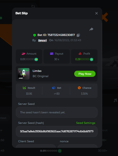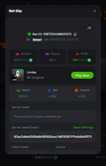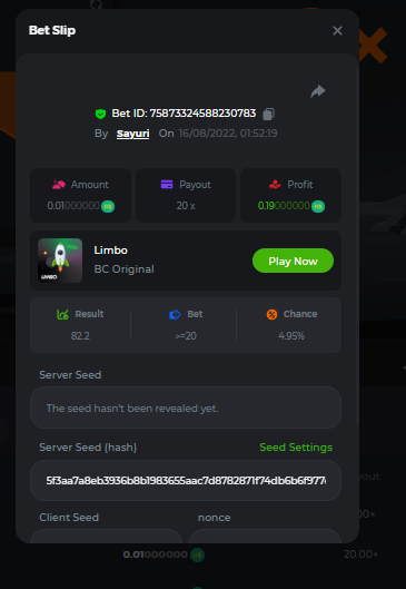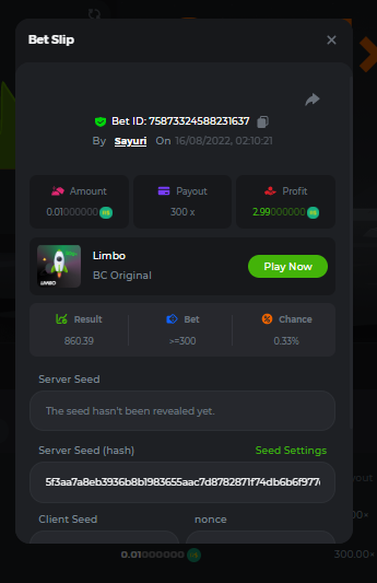 Sayuri_82 replied to BCGame_Maxim's topic in VIP Challenges