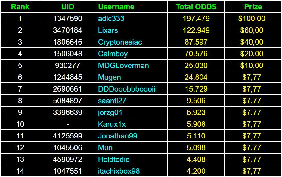 6. Sports Daily Challenges #12 Challenge: Who will be the winner of the match? We Dare you to bet this match!! 10 WINNERS WILL CHOOSING AFTER MATCH FINISH The bet slips must be posted open! Before general settlement at the end of the match. The betslip must be posted before the start of the match. Edited posts will not be considered Minimum bet size is : 0.5 $ Highest basebet, whit right bet (winning team) will win it Reward : 5$ for 10 winners Choose your team, and get the reward
