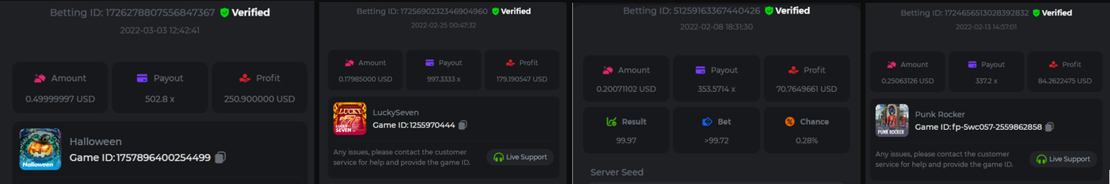 6. -- Just to keep track -- Wild Bounty Showdown - 945.7x Candy Bonanza - 102.4x Leprechaun Riches - 98.75x Spirited Wonders - 68.35x Butterfly Blossom - 135.44x Supermarket Spree - 152.25x Wild Bandito - 207.2x Destiny of Sun and Moon - 111.4x Prosperity Fortune Tree - 210.15x Legendary Monkey King - 84.6x -- -- -- -- -- -- -- -- -- -- -- -- https://bc.game/#/sd/111MI4BCN45A8J https://bc.game/#/sd/1118N98VQ6YOLV https://bc.game/#/sd/111FLN8H2KMUXF https://bc.game/#/sd/1117ZLODNLU13N https://bc.game/#/sd/111ASNM3GZTLOZ https://bc.game/#/sd/111E79UVO7INMB https://bc.game/#/sd/111D534T8YKE1F https://bc.game/#/sd/111ECYHMTQN09F https://bc.game/#/sd/111LTQM7BZ1TEB https://bc.game/#/sd/111D33QIXPOU1F BOUNTY