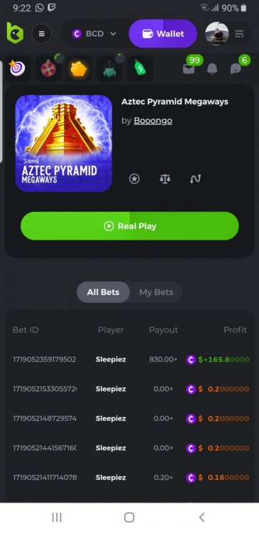 Sleepiez BGaming Candy Monsta (120.5x) Betting ID: 1719771673415153415 BetSoft Safari Sam2 (145.65x) Betting ID: 1720206799224722183 GameArt WolfHunt (66x) Betting ID: 1720209416468779136 NolimitCity Tombstone(145x) Betting ID: 1720210419231831047 Quickspin Most Wanted 3(106.88x) Betting ID: 1720214130037355392 Playson Book of Gold2 (114.75x) Betting ID: 1720237312263717504 Habanero Betting ID: 1720240090905229184 Pragmatic Xmas Carol 92.4x Betting ID: 1720297147592160519 Tiresome event playing so many slot just for 2000cash prize for 10player. Can you atleast have some automated scoring script so we dont need to keep posting one by one.