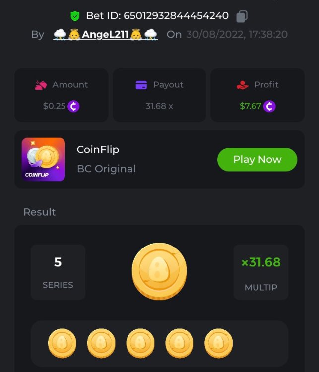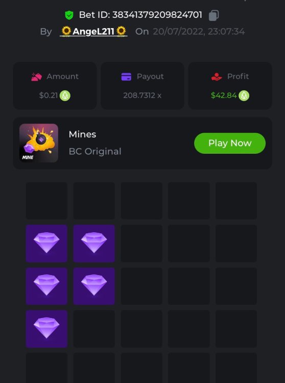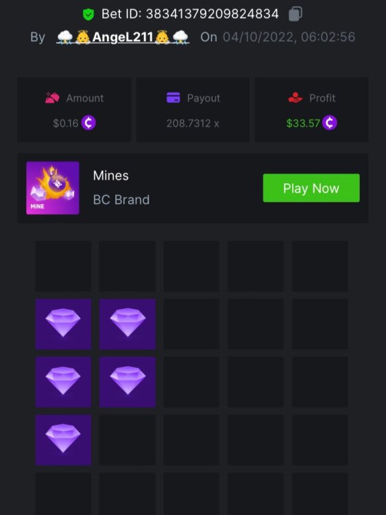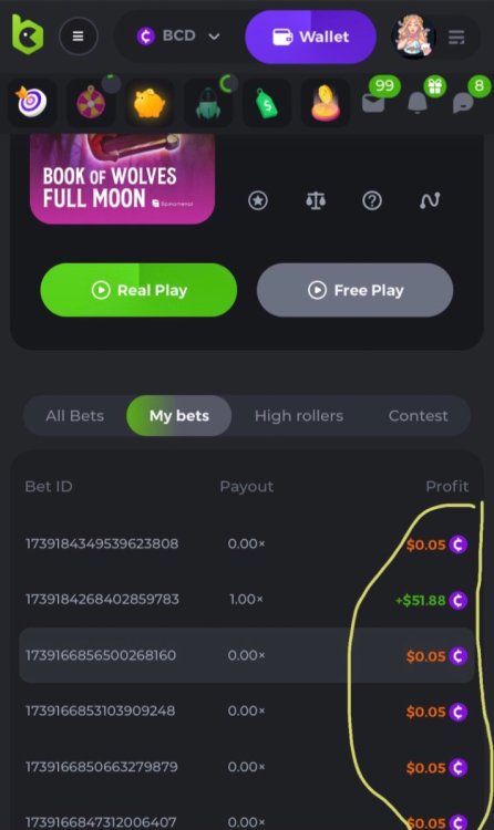 $4,000 Top Tier Spinomenal Multiplier Battle!AngeL211 replied to Niobium's topic in Past Challenges https://bc.game/sd/?sd=10PBJ2O4N990CZ https://bc.game/sd/?sd=10PBKJQBF8X0YB https://bc.game/sd/?sd=10PBMESQP8UK9F https://bc.game/sd/?sd=10PC2765RA33MB https://bc.game/sd/?sd=10PC2WZ1DR6RDF https://bc.game/sd/?sd=10PCMUSUB4F2MR $0.0 bet, 1x multi payout, $51.88 bcd (got wrong bet id) how come $0.00 bet? the min of that slot is $0.05. it shoud be $0.05 bet amount, 1037.6x multi payout, profit $51.88 bcd