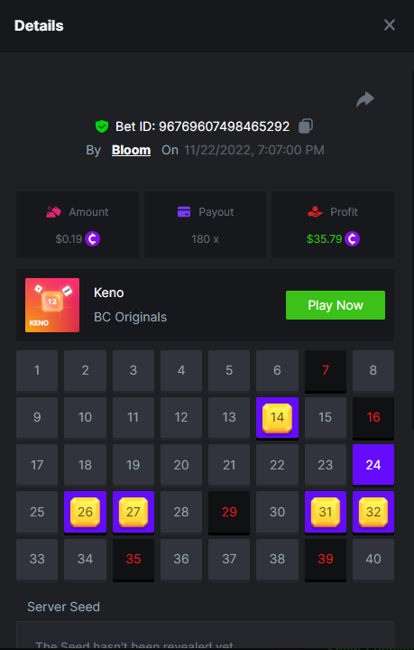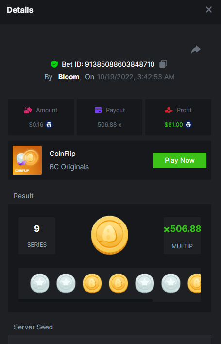 8. x506.88 multiplier + BOUNTY (9 or more) https://bc.game/#/sd/10VCFPOU65YKNN
