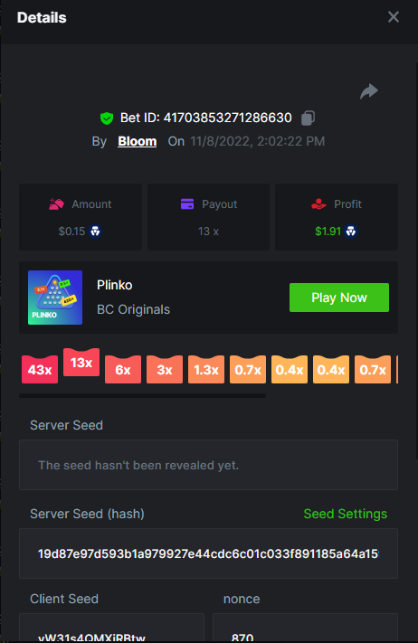 7. x11 https://bc.game/#/sd/10WR5AMEOFT6VN x13 https://bc.game/#/sd/10WR5TRRKDL4B7