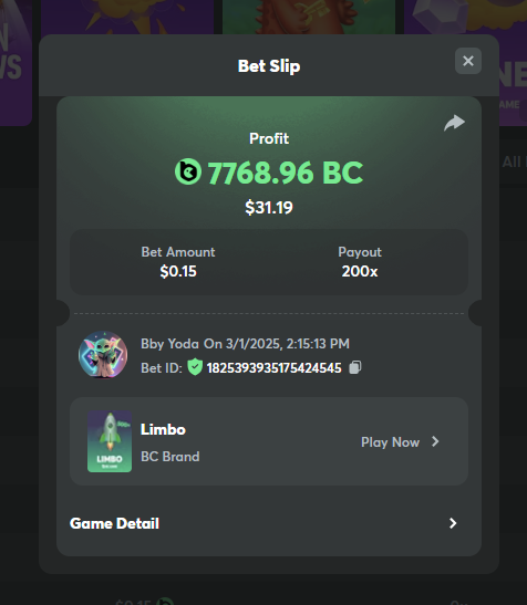 3. HARD 1. Win on Wheel 48x or higher - Row 50, Segment High. https://bc.game/game-detail/1825381028108473891 2. Score 100x or higher in the Crash game. https://bc.game/game-detail/1825382938224318851 3. Win CoinFlip game 200x or higher multiplier. https://bc.game/game-detail/1825383611262990371 4. Stellar Rush get 200x or higher in the game. https://bc.game/game-detail/1825399678713421346 5. Plinko win 252x or higher in Row 14, High Risk. https://bc.game/game-detail/1825381945963958049 6. Limbo game is your target to win 200x or higher. https://bc.game/game-detail/1825393935175424545 7. Get 200x or higher in the Hash Dice game. https://bc.game/game-detail/1825394623162498081 8. BC Originals Slot Sea Of Olympus 1000 score a win 100x or higher. https://bc.game/game-detail/1825945368781779235 9. BC Originals Slot Gold of Olympus score a win 100x or higher. 10. Get 90x or higher in the Duck Hunter slot game from NoLimitCity. https://bc.game/game-detail/1825405508850703649 11. Win a 10x+ payout on a Sports parlay/combo bet should consist on 3+ matches to qualify! Bet Id: 2512790685074207035 Medium 1. Deposit At least $100 USD 2. Get 50x in the Crash game. https://bc.game/game-detail/1825947633929377670 3. Get a payout of 73.6x on the original Plinko game Risk-High, Row-10 https://bc.game/game-detail/1825941318525539619 4. BC original Roulette Single game Win 36x on the on number 0. https://bc.game/game-detail/1825424891044944674 5. Get 50x in the BC original Starshine Princess 1000 slot game. https://bc.game/game-detail/1825941998974470178 6. BC original Stellar Rush game Win 50x in the. https://bc.game/game-detail/1825433104756547362 7. Win a 96.96x Keno bet by selecting numbers 1, 14, 22, 28 (Risk: Medium). https://bc.game/game-detail/1825424463452185121 8. Get 50x in the Poker Ways slot game. https://bc.game/game-detail/1825942652878339106 9. BC original Wukong slot game get 50x multi. 10. Buy at least 30 BC Lottery tickets using $BC Token. -or- Buy at least 2 BC Porsche lottery tickets using $BC Token send screenshot in forum post. 11. Win a sports parlay/combo bet with at least 3 matches and a 2.5x minimum payout to qualify. bet id : 2507603194100719962 Easy 1. Deposit at least $50 USD 2. Follow BC.GAME on Instagram, take a screenshot, and share it with your IG username in the forum! IG: @vladpkr 3. Share a BC.Game photo or video on your Instagram, tag us #bcgame, and drop the link with your IG username in the forum! IG: @vladpkr https://www.instagram.com/p/DGrB1nmt7gafOh4ZPSw5GmmtpAID6tAbWCXfQo0/ 4. Follow BC.GAME Twitter Take a screenshot of the following and include your Twitter username in the forum. Twitter : @BbyYodaaa 5. Like and Retweet BC.GAME's latest post and tag at least 3 of your friends. Take a screenshot and include your Twitter username in the forum. Twitter : @BbyYodaaa 6. Follow BC.GAME Facebook. Take a screenshot of the following and include your FB username in the forum. FB username : https://www.facebook.com/ciucalete.florinel 7. Win a payout of 20x on the original Limbo game. https://bc.game/game-detail/1825430223659262499 8. Win a Sports bet with a minimum payout of 1.5x odds (Only for single bets). Bet ID: 2507756112523174597 9. Get a 20x multi in the Arabian Secret slot game. https://bc.game/game-detail/1825431774221836065 10. Get a 30x multi in the Sugar Fiesta 1000 slot game. https://bc.game/game-detail/1825431475562763809 11. Activate 2FA security on your BC.Game account. Take a screenshot of 2FA and keep it active till the result is announced.