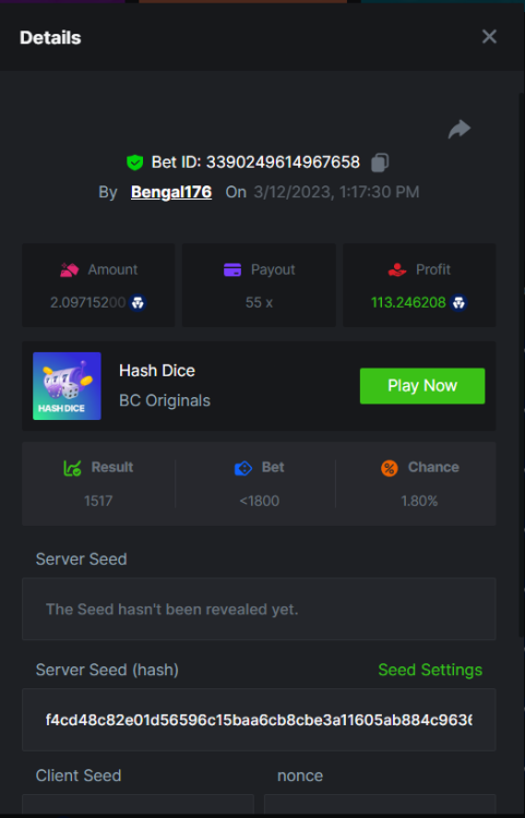 $1,500 Exclusive Weekend Hash Dice Prestige Challenge #76