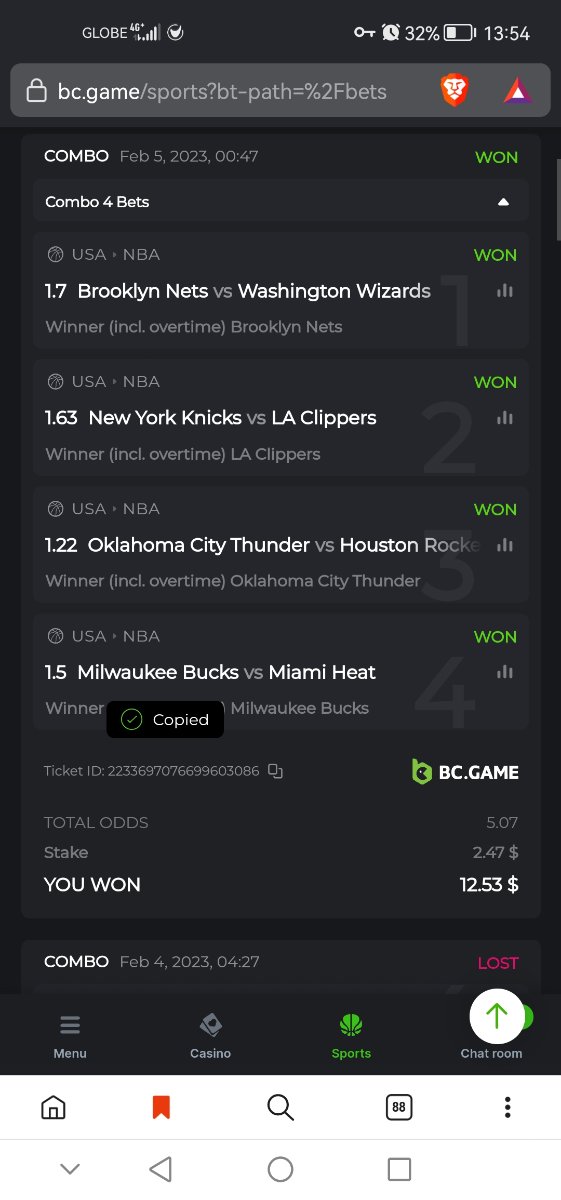 4. Bet id : 2235107901423366169 Bet id : 2235373823480438866