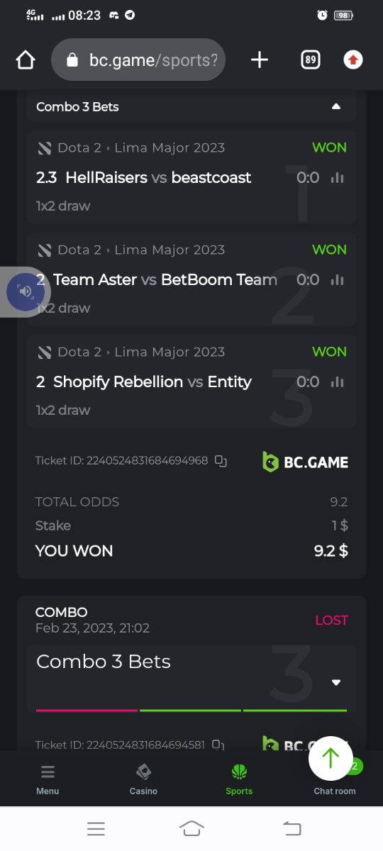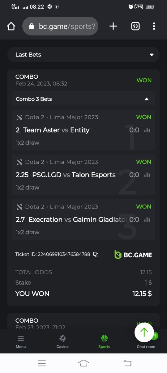 2. Bet I'd : 2241715798236344879 Bet id : 2243511300078575666