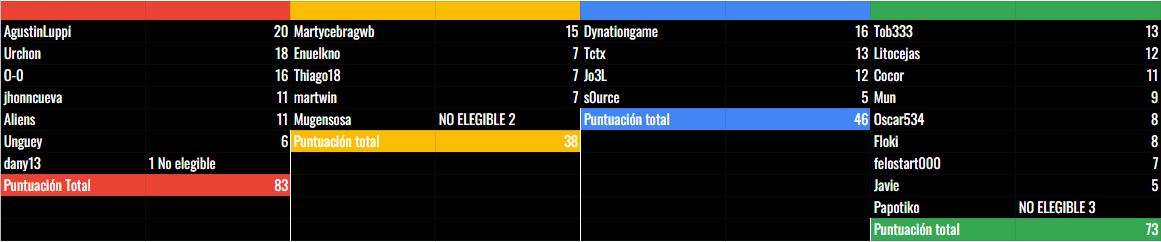 2. Mil disculpas, olvidé por completo publicar la lista de ganadores aquí, solo la publiqué en el chat Los premios ya fueron enviados hace 2 días: A los 4 mejores jugadores de cada equipo, y a todos los jugadores elegibles de los 2 equipos ganadores.
