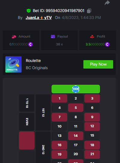 8. Easy 1. Win a Classic Dice bet with a 5x payout. https://bc.game/#/sd/11753S5GFRO2KZ 2. Win a 'Tie' 9x bet on the Baccarat. (no spread bets) https://bc.game/#/sd/11753V9Z4OZI1F 3. Get a 10x payout on a Crash bet. Make sure you catch the moon. https://bc.game/#/sd/117664TZCBXQFN 4. Get a 10x payout on the Egyptian Adventure. https://bc.game/#/sd/11754QJ7EREADV 5. Get a 20x payout on the Oriental Beauties. https://bc.game/#/sd/117556Q0HIN2FN 6. Win a Cave of Plunder bet on 7.50x payout (Completing all book symbols). https://bc.game/#/sd/11755DC2MO0W7N 7. Win a Sports bet with minimum odds being 1.5x (singles only) 1$ base min amount. 2256443882550203095 8. Get a minimum 20x multi on BGaming Hello Easter slot. https://bc.game/#/sd/1176DZOUF7HQ8J 9. Get a minimum 30x multi on Red Tiger Lucky Easter slot. https://bc.game/#/sd/1176EG3EDFI3V7 10. Enable 2FA for your BC.Game account + Verify E-Mail & Phone Number (If it's already activated, keep it activated). Medium 1. Win a bet in Roulette Single with betting on 0 only (36x). (no spread bets) https://bc.game/#/sd/117570EUE5982B 2. Get a 76x on Plinko. https://bc.game/#/sd/11761FG36E85CJ 3. Win 99x multi on Ring of Fortune. (no spread bets) 4. Win a Sports bet with minimum odds of 2x (singles only) 1$ base min amount. 2256444139656851877 5. Win a bet with Straight Flush in Video Poker (60x). 6. Win a bet on Keno Single by selecting numbers 7, 30, and 8, Medium risk. (50x). https://bc.game/#/sd/117585JEUEVE37 7. Win a bet by getting a natural Blackjack (A+K/Q/J/10) with only red cards in it. 8. Get a minimum 90x multi on BGaming Easter Heist slot. 9. Get a minimum 100x multi on Play&Go Easter Eggs slot. https://bc.game/#/sd/11768H7D93BSB7 10. Get a minimum 100x multi on No Limit City Bonus Bunnies slot. Hard 1. Get a 49.50x on Wheel (50 segments, High risk). https://bc.game/#/sd/1175AL07QWGYDV 2. Get a 420x on Plinko (14 rows, High risk). 3. Win with a minimum 500x multi on Limbo. 4. Get a minimum 506.88x on Tower Legend. 5. Win with a minimum 999x on Crash. 6. Post a winning bet with 21 mines and 3 diamonds on Mines game, (569.25x). 7. Win a bet on Keno Single by selecting numbers 10, 11, 12 and 13, High risk, (259.00x). https://bc.game/#/sd/11758J3N21Q58Z 8. Get at least 300x multi on Pragmatic Play Rabbit Garden slot. 9. Get a minimum 300x multi on Wazdan Burning Sun Easter slot. 10. Win a Sports bet with minimum odds of 10x (any bet allowed) with 1$ base min amount.