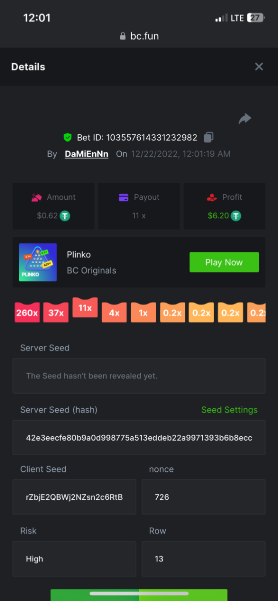 16x | 26x | 27x | 29x | 33x | 37x | 43x | 56x | 58x | 76x | 83x | 88x | 110x | 120x | 130x | 170x | 260x | 420x | 620x | 1000x 26x bet $3.15 - https://bc.game/#/sd/11MZHBXLVUUUE3 27x bet $1.57 - https://bc.game/#/sd/11MZH1LBMLPHSR 130x bet $0.59 - https://bc.game/#/sd/11MZGT9HHNYVBN extra added nice multis 18x bet $6.21 - https://bc.game/#/sd/11MZHG9VTDZ0GJ -