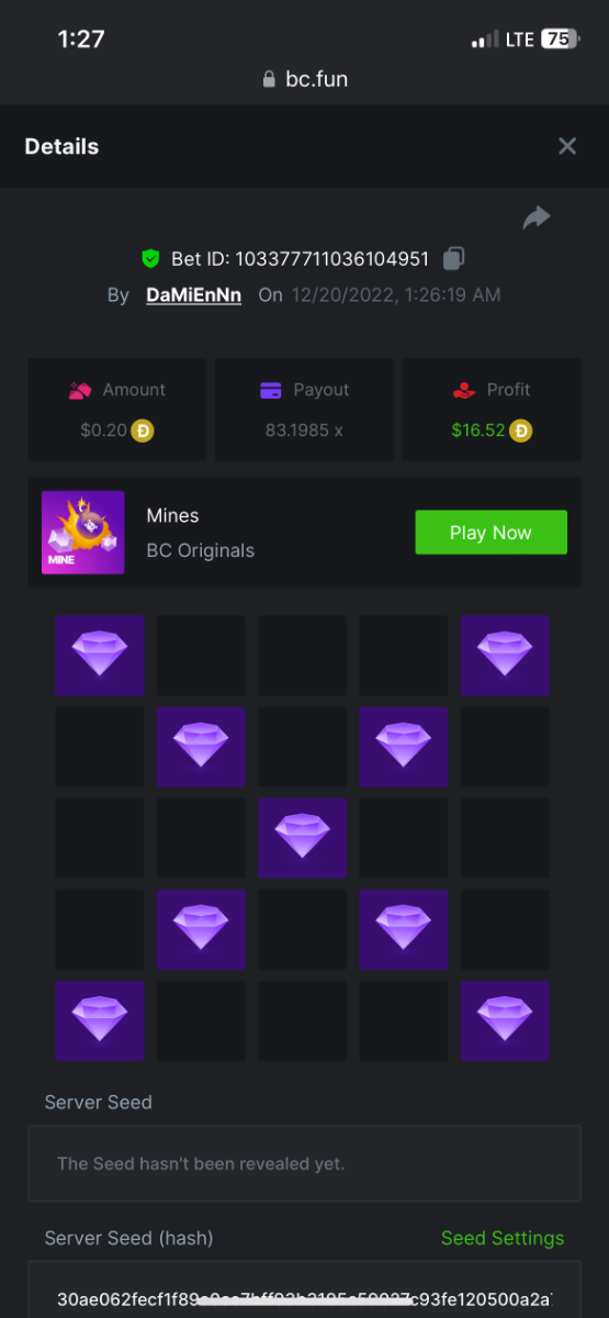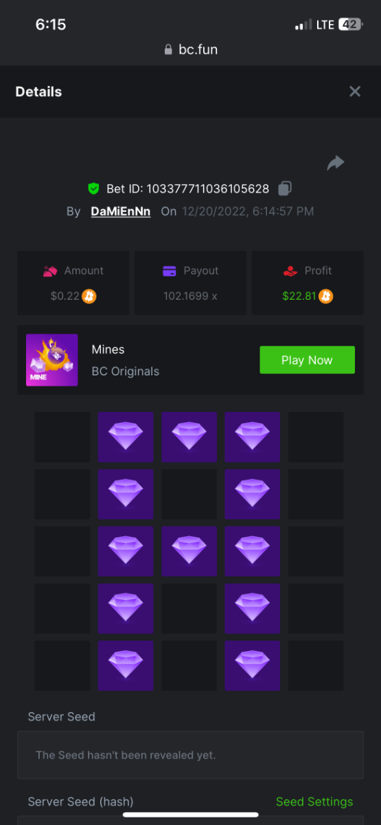 Mines “Xmas” X-https://bc.fun/#/sd/10ZMNO0HIDOKCZ $0.20 bet 9 diamonds 8 mines A-https://bc.fun/#/sd/10ZOE511SG8B9V $0.22 bet 6 mines 12 diamonds -