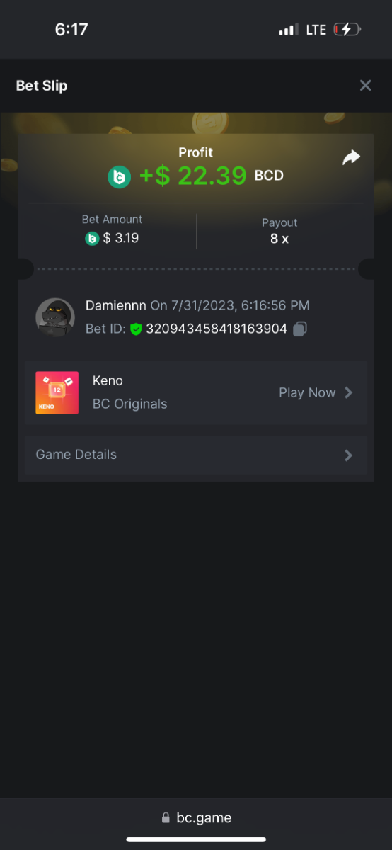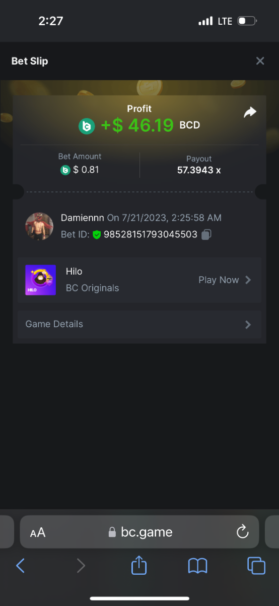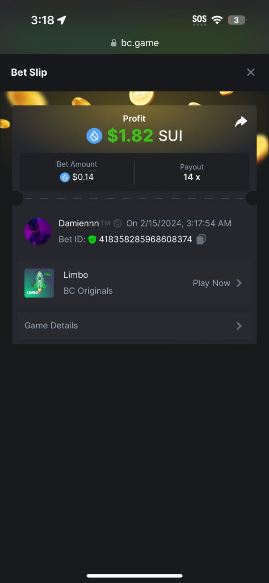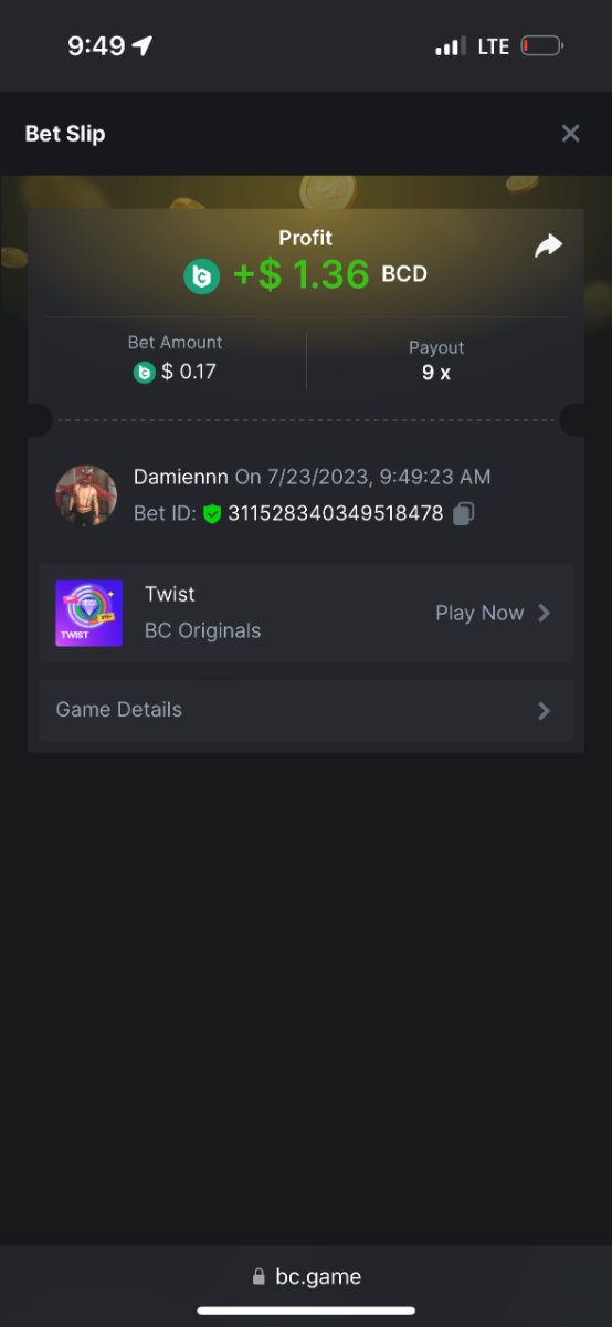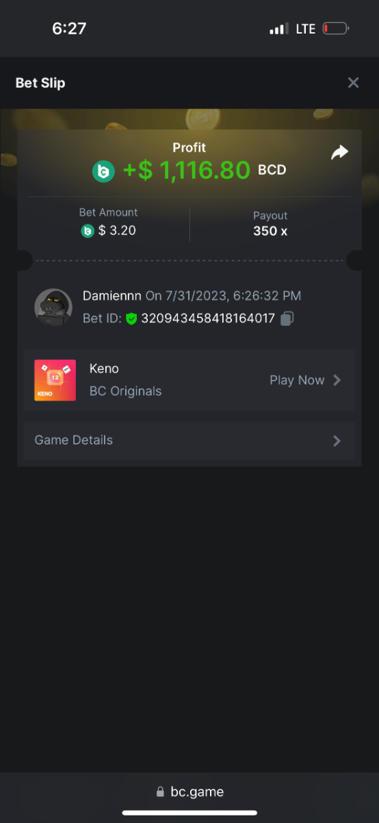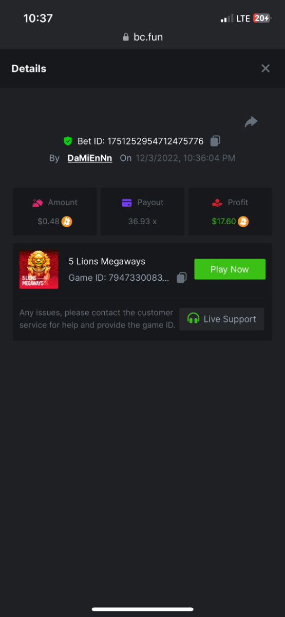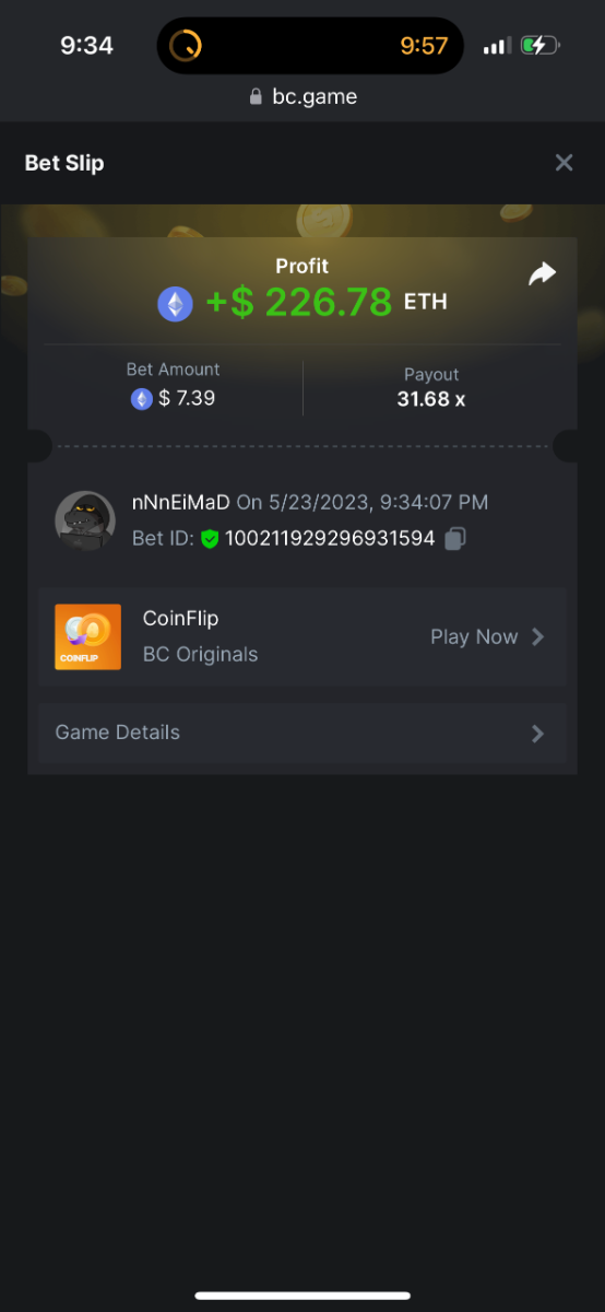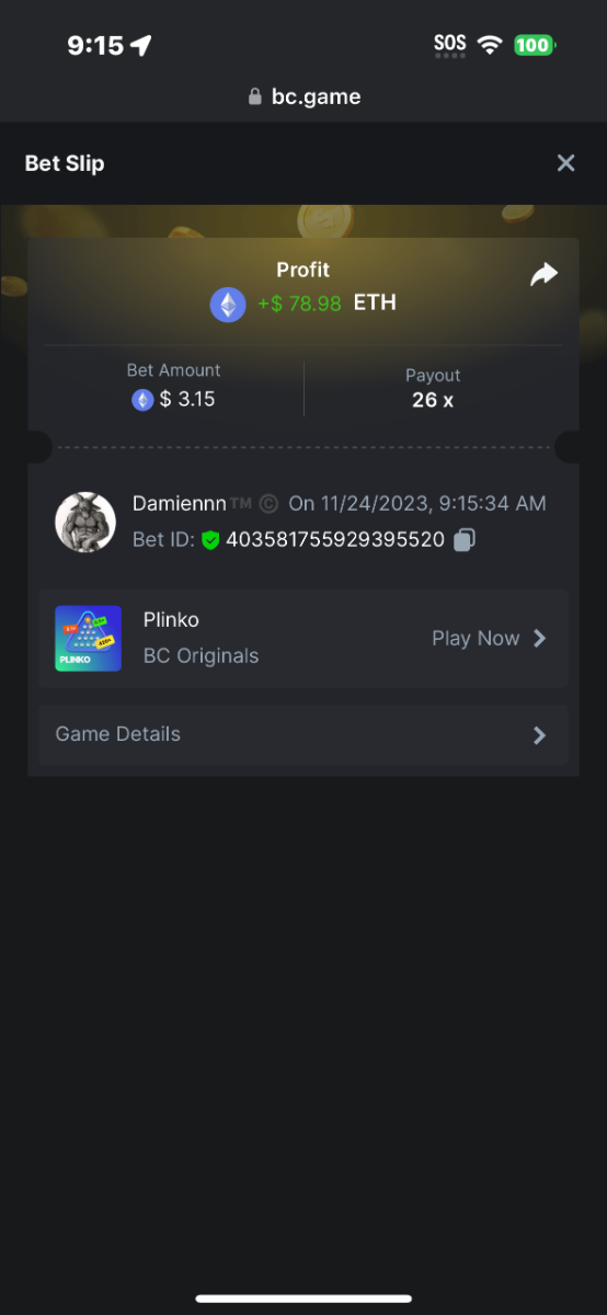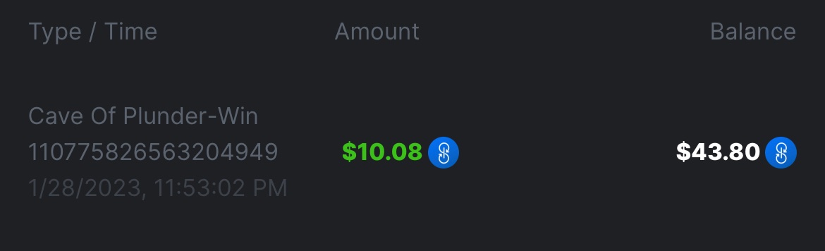 https://bc.fun/#/sd/112DOFUXGU3FGZ 12x $0.30 bet Don’t know if you can use this one because I lost bet link but I post it below anyways Cave Of Plunder-Win 110775826563204949 1/28/2023, 11:53:02 PM 33.60x $0.30 bet - $10.08 win -