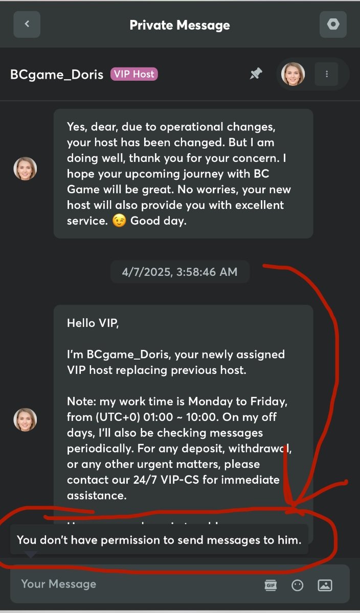 This same thing happened to me. I also have been with BC.Game for 4 years. I’m VIP 60 with 4k xp left to level up to VIP 61. I haven’t had the easiest time lately being able to wager or anything on bc.game. i got a notification about how my vip host services are going to be stopping. Due to not playing as much. Which is not fair. Considering the loyalty I have provided Bc.Game and how much I have actually deposited there. I earned the right to have my vip host a long while ago. It is part of the advantages of being loyal and raising to the level that I am now with VIP. on July 1st, (my birthday) I asked support about being able to get a birthday bonus and they told me no and that I no longer have vip host services. Which is so wrong, on multiple levels. A vip host is part of the rewards you get for playing at bc.game, which I 100% put in the time, money and work to be able to have these rewards. since they took away my host. I didn’t get a birthday bonus like I would normally. I used to get little bonuses here and there as an incentive to keep on playing at bc.game. Which honestly was awesome. But now… I get nothing. I’ve even deposited quite a bit lately and I don’t even get any lossback of the deposits that I have lost. Like what is the point of playing at bc game anymore. There is no incentives on playing there anymore. It’s such a shame. Truly.