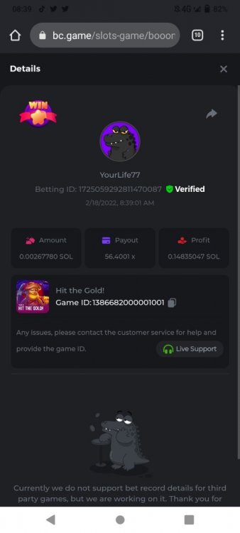 7. Hit the gold Betting ID: 1725059292811470087 Golden dancing lion Betting ID: 1725058790545249152 Tiger jungle Betting ID: 1725058501611886464 Solar queen Betting ID: 1725060468877351552