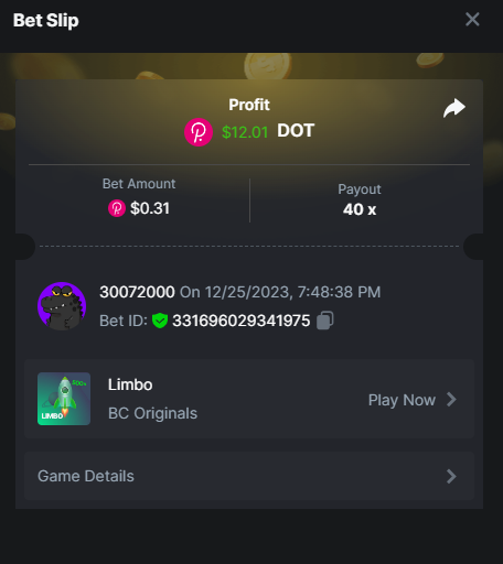 3. 331696029321517 https://ibb.co/2PjpB6R 0.1 usd bet { 5000x } multiplier