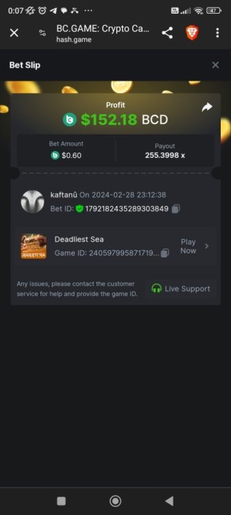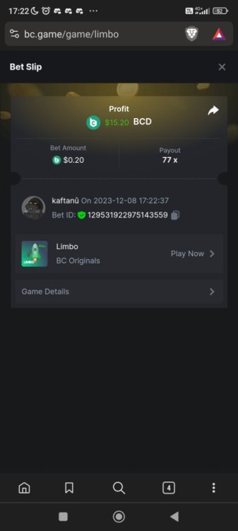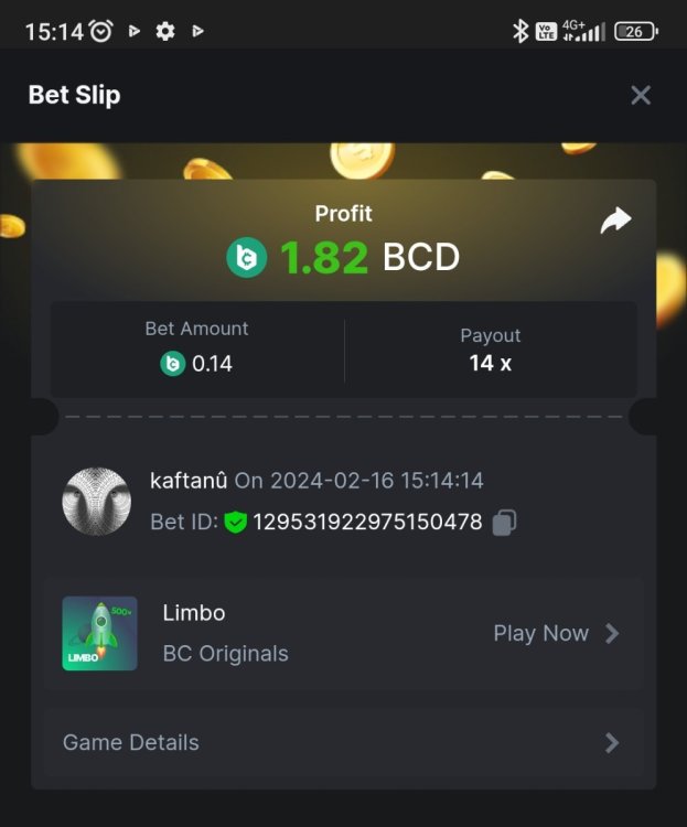 Easy completed: 11/11 Medium completed: 11/11 Hard completed: 11/11 Total completed: 33/33 Easy Deposit at least $50 USD order id: A-1826772919619803028 txid; 8bc5b74cd34e637de638209c51e2ed1f85987b4dcb98b0b022c269b66c4ce66a Follow BC.GAME on Instagram, take a screenshot, and share it with your IG username in the forum! @andersson4416 Share a BC.Game photo or video on your Instagram, tag us #bcgame, and drop the link with your IG username in the forum! https://www.instagram.com/p/DHRJLO0IRWKJeZ93mJxLIc4Hii0yPo-eTA9LGA0/ Follow BC.GAME Twitter Take a screenshot of the following and include your Twitter username in the forum. Like and Retweet BC.GAME's latest post and tag at least 3 of your friends. Take a screenshot and include your Twitter username in the forum. @norwesc1 Follow BC.GAME Facebook. Take a screenshot of the following and include your FB username in the forum. @philip Andersson Win a payout of 20x on the original Limbo game. https://bc.game/game-detail/1826772581589276195 Win a Sports bet with a minimum payout of 1.5x odds (Only for single bets). $20 basebet id: 2518634806175212057 Get a 20x multi in the Arabian Secret slot game. https://bc.game/game-detail/1826774273486895649 Get a 30x multi in the Sugar Fiesta 1000 slot game. https://bc.game/game-detail/1826775790355304227 Activate 2FA security on your BC.Game account. Take a screenshot of 2FA and keep it active till the result is announced. Medium Deposit At least $100 USD order id: A-1827391788888210346 txid: 17d607b0c1744b38fedd5daf1f84185323fb978da9acd4a6f4e9368bf426ac5b Get 50x in the Crash game. https://bc.game/game-detail/1826774341540379012 Get a payout of 73.6x on the original Plinko game Risk-High, Row-10. https://bc.game/game-detail/1826780255898878243 BC original Roulette Single game Win 36x on the on number 0. https://bc.game/game-detail/1826780745485731361 Get 50x in the BC original Starshine Princess 1000 slot game. https://bc.game/game-detail/1826776020089892899 BC original Stellar Rush game Win 50x in the. https://bc.game/game-detail/1826773872535639331 Win a 96.96x Keno bet by selecting numbers 1, 14, 22, 28 (Risk: Medium). https://bc.game/game-detail/1826773213339452195 Get 50x in the Poker Ways slot game.* https://bc.game/game-detail/1826777388308230435 BC original Wukong slot game get 50x multi. https://bc.game/game-detail/1826776665318515235 Buy at least 30 BC Lottery tickets using $BC Token. -or- Buy at least 2 BC Porsche lottery tickets using $BC Token send screenshot in forum post. Win a sports parlay/combo bet with at least 3 matches and a 2.5x minimum payout to qualify. ticket id: 2513131965474025926 HARD Win on Wheel 48x or higher - Row 50, Segment High. https://bc.game/game-detail/1826775668826703138 Score 100x or higher in the Crash game. https://bc.game/game-detail/1826776885560453763 Win CoinFlip game 200x or higher multiplier. https://bc.game/game-detail/1826781114918438177 Stellar Rush get 200x or higher in the game. https://bc.game/game-detail/1826773496030045987 Plinko win 252x or higher in Row 14, High Risk. https://bc.game/game-detail/1826774086715626274 Limbo game is your target to win 200x or higher. https://bc.game/game-detail/1826776723522677793 Get 200x or higher in the Hash Dice game. https://bc.game/game-detail/1826779120727121441 BC Originals Slot Sea Of Olympus 1000 score a win 100x or higher. https://bc.game/game-detail/1826778517608042529 BC Originals Slot Gold of Olympus score a win 100x or higher Dorks of the Deep slot game. (Alternative from 24-Marc https://bc.game/game-detail/1827580461740617506 Get 90x or higher in the Duck Hunter slot game from NoLimitCity. https://bc.game/game-detail/1826778717951623715 Win a 10x+ payout on a Sports parlay/combo bet should consist on 3+ matches to qualify! 2514965600959340817
