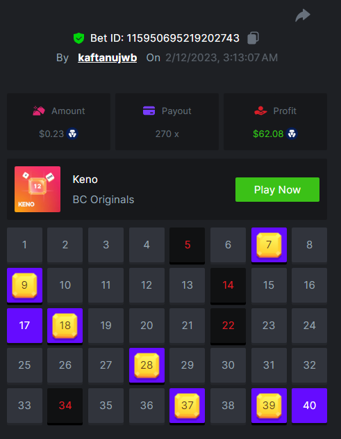 $1,500 Exclusive Weekend Keno Prestige Challenge #68