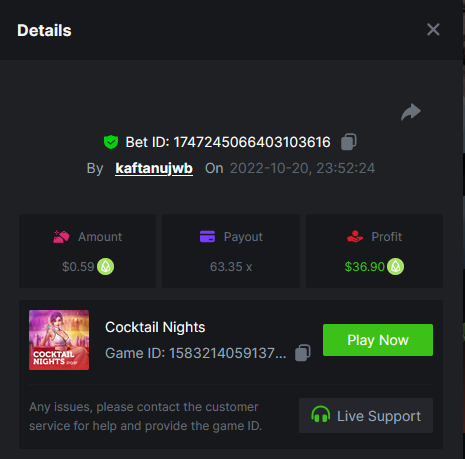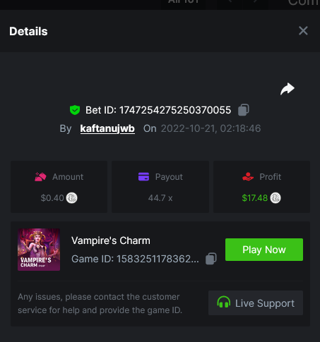 https://bc.game/#/sd/10VH02B327Z2FN Buffalo win 194.9 x https://bc.game/#/sd/10VH1BIJNTVUOJ Wild bandito 28.75x https://bc.game/#/sd/10VH3K3IB0QP77 Cocktail Nights 63.35x Battleground royale 22.05x https://bc.game/#/sd/10VH44P5BL1GK3 Vampire's Charm 44.7x https://bc.game/#/sd/10VHCM22LQZZ0Z