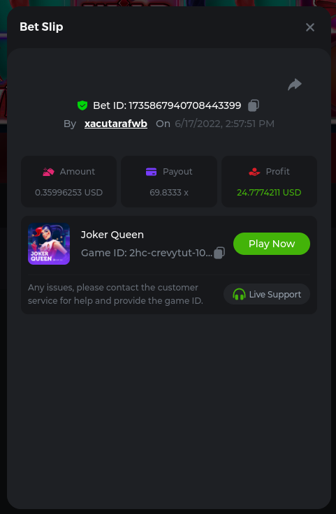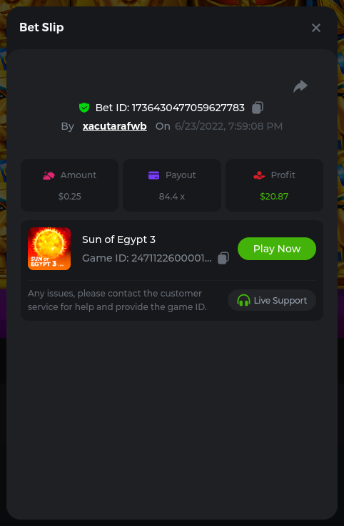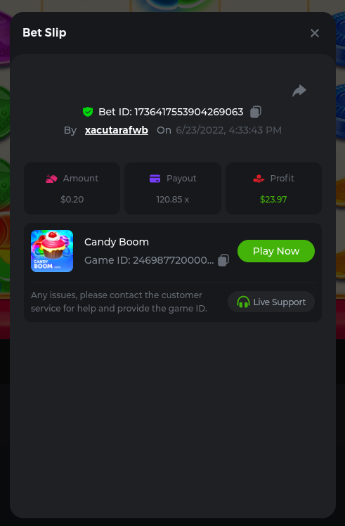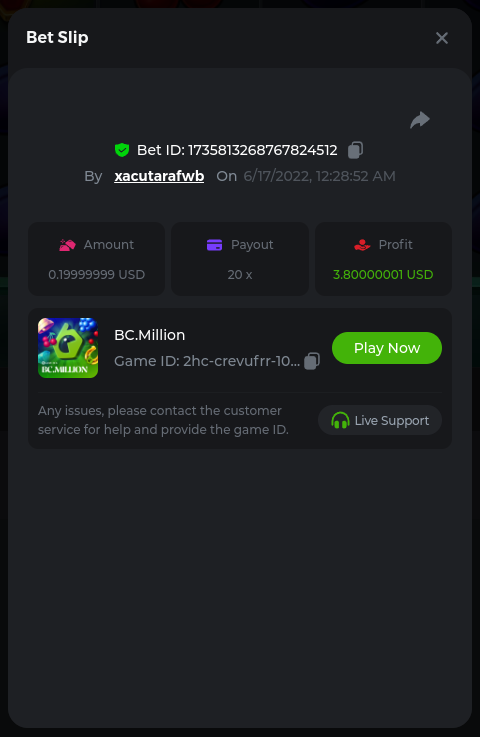 20. #1 Bet ID 64006664956674443 Link: https://bc.game/sd/?sd=10K8G17RGF7GGJ #2 Bet ID 64006664956674444 Link: https://bc.game/sd/?sd=10K8G2MV09AJGZ #3 Bet ID 64006664956674445 Link: https://bc.game/sd/?sd=10K8G4QMXAHL3N #4 Bet ID 64006664956674446 https://bc.game/sd/?sd=10K8G6GUANDGYB