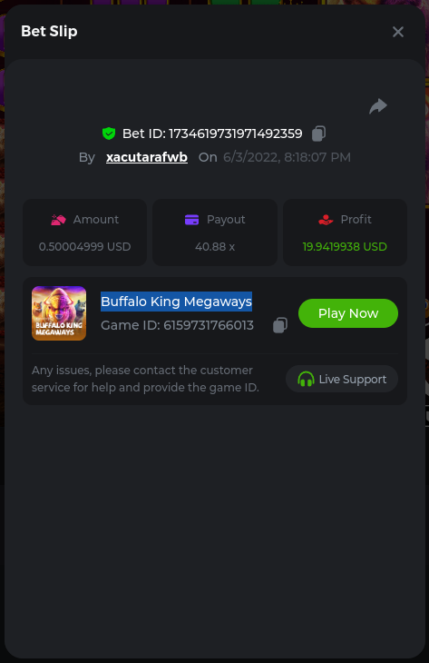 19. Cyber Wolf 10x https://bc.game/sd/?sd=10KDI5SGCTAHW3 Buffalo 50 62.3x https://bc.game/sd/?sd=10KCRQLOFXSNBN Rooster Fury 10x https://bc.game/sd/?sd=10KDIDU6F30UTV Satoshi's Secret 124 x https://bc.game/sd/?sd=10KDIW8SEZMD5F Little Panda 10 x https://bc.game/sd/?sd=10KDJ46PFLNQJ7 Twerk 10 x https://bc.game/sd/?sd=10KDJBSGACWS9F